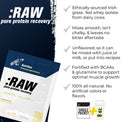 RAW is simply the highest quality grass-fed whey protein isolate from premium Irish dairy fortified with BCAAs and immune supporting Glutamine — No sugars or sweeteners. No carbs. Nothing artificial.